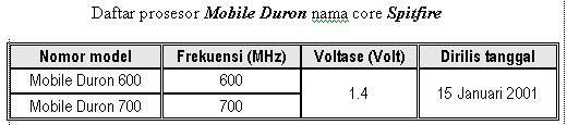 1.1 Prosesor Mobile Duron nama core Spitfire (Model 3)